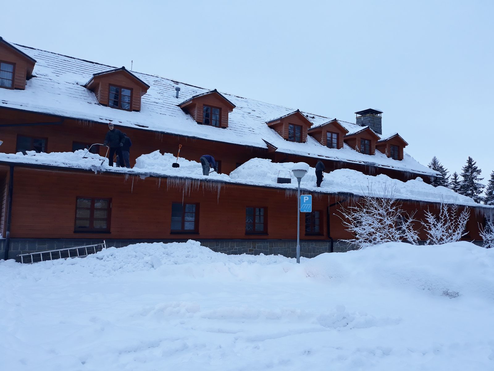 Odklízení sněhu ze střechy 2