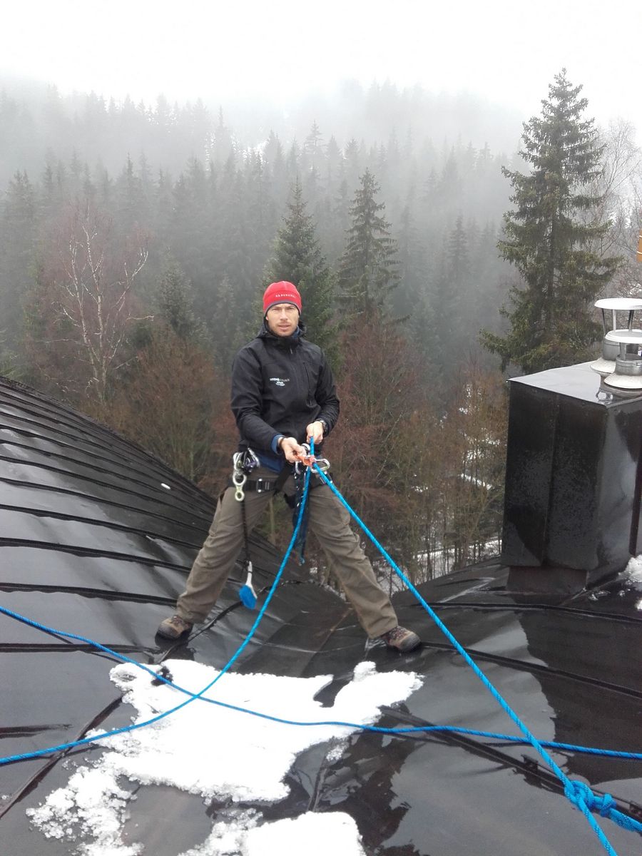 Úklid sněhu pomocí horolezecké techniky